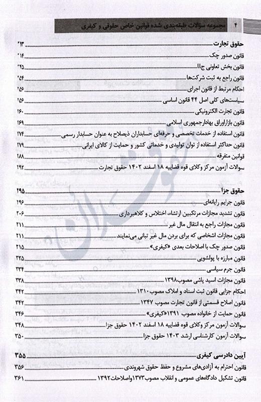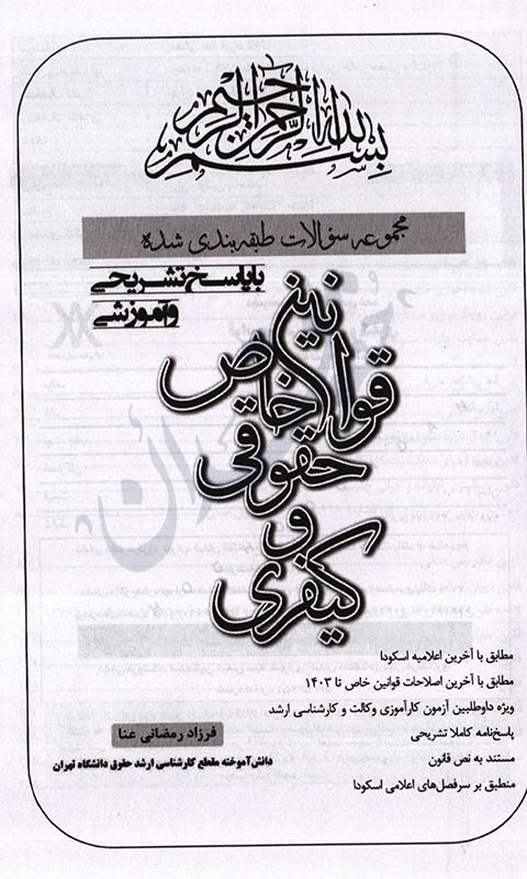 این کتاب مشتمل بر سوالات طبقه بندی شده (سنوات گذشته) قوانین خاص همراه با پاسخنامه تشریحی میباشد.