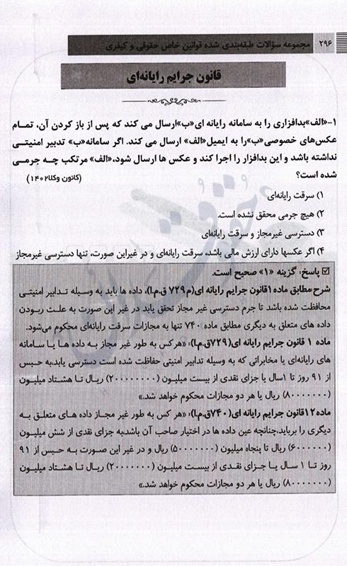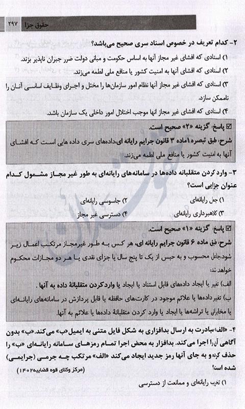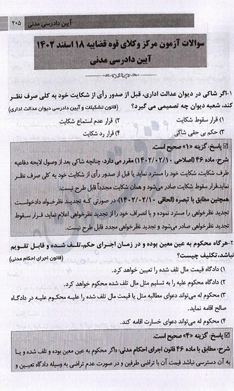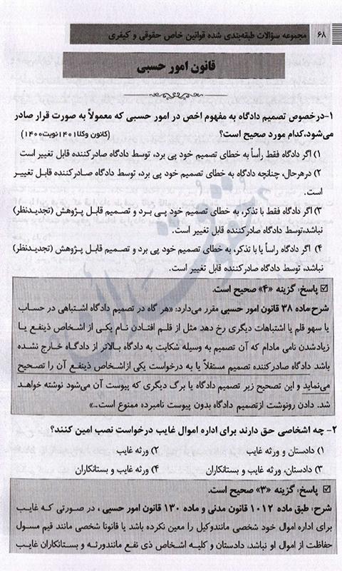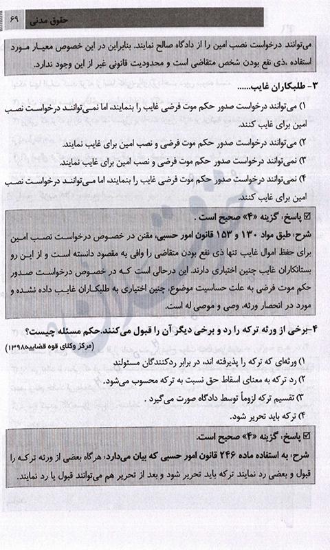 کلیه تست های موجود در کتاب، دارای پاسخ تشریحی با استناد مواد قانونی جهت ارتقاء دانش و مهارت داوطلبان آزمون میباشد.