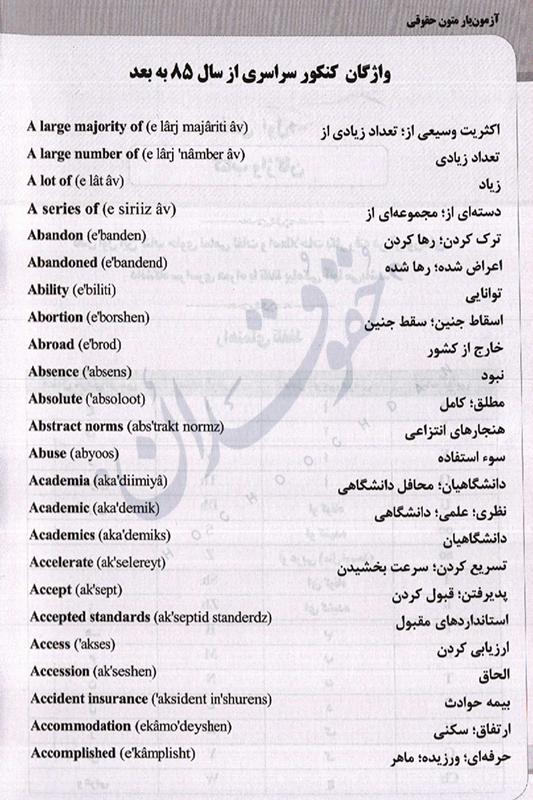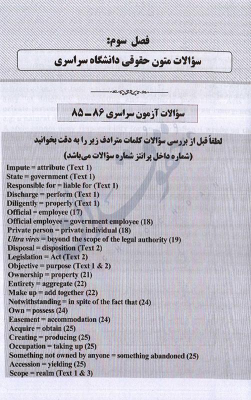 کتاب آزمون یار متون حقوقی رمضانی شامل سوالات متون حقوقی آزمون های سراسری از سال ۱۳۸۵ تا ۱۴۰۳ با ترجمه کلی متن ها و سوالات میباشد. ضمنا در فصل اول و دوم کتاب واژگاه مهم حقوقی آزمون های کارشناسی ارشد همراه با تلفظ و ترجمه و مترادف انگلیسی گردآوری شده است.