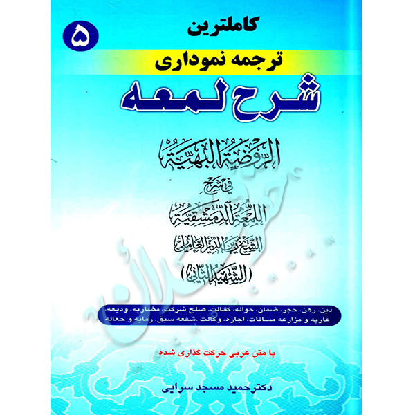 کتاب کاملترین ترجمه نموداری شرح لمعه شهید ثانی (جلد پنجم) در باب دین، رهن، حجر، ضمان، کفالت، صلح، شرکت، مضاربه، ودیعه، عاریه، مزارعه، مساقات، اجاره، وکالت، شفعه، سبق، رمایه و جعاله با متن عربی حرکت گذاری شده و نیز ترجمه دکتر حمید مسجدسرائی در انتشارات حقوق اسلامی به چاپ رسیده است.