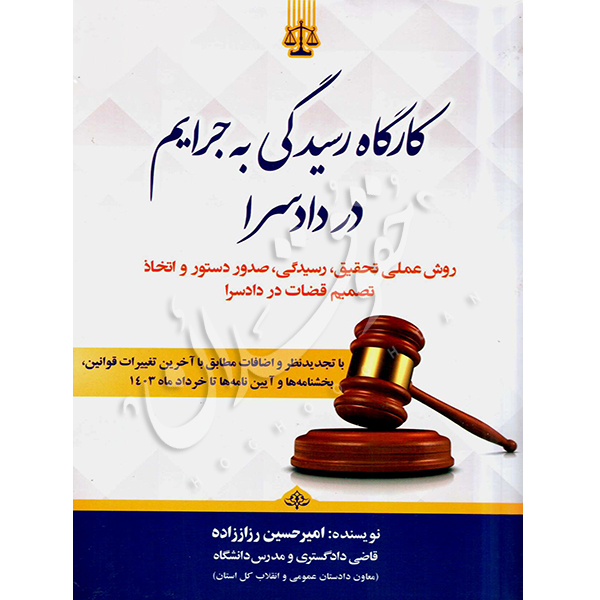 کتاب کارگاه رسیدگی به جرایم دادسرا روش عملی تحقیق، رسیدگی صدور دستور و اتخاذ تصمیمات قضات در دادسرا (با تجدیدنظر و اضافات مطابق با آخرین تغییرات قوانین) تالیف امیرحسین رزاززاده می باشد.